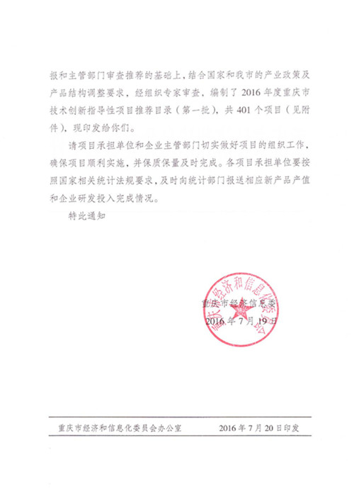 熱烈祝賀重慶綠色科技開(kāi)發(fā)有限公司申報的“互聯(lián)網(wǎng)+”多色溫防霧霾、亮度遙調新一代LED路燈及遠程智能控制系統成功列入《2016年度重慶市技術(shù)創(chuàng )新指導性項目》