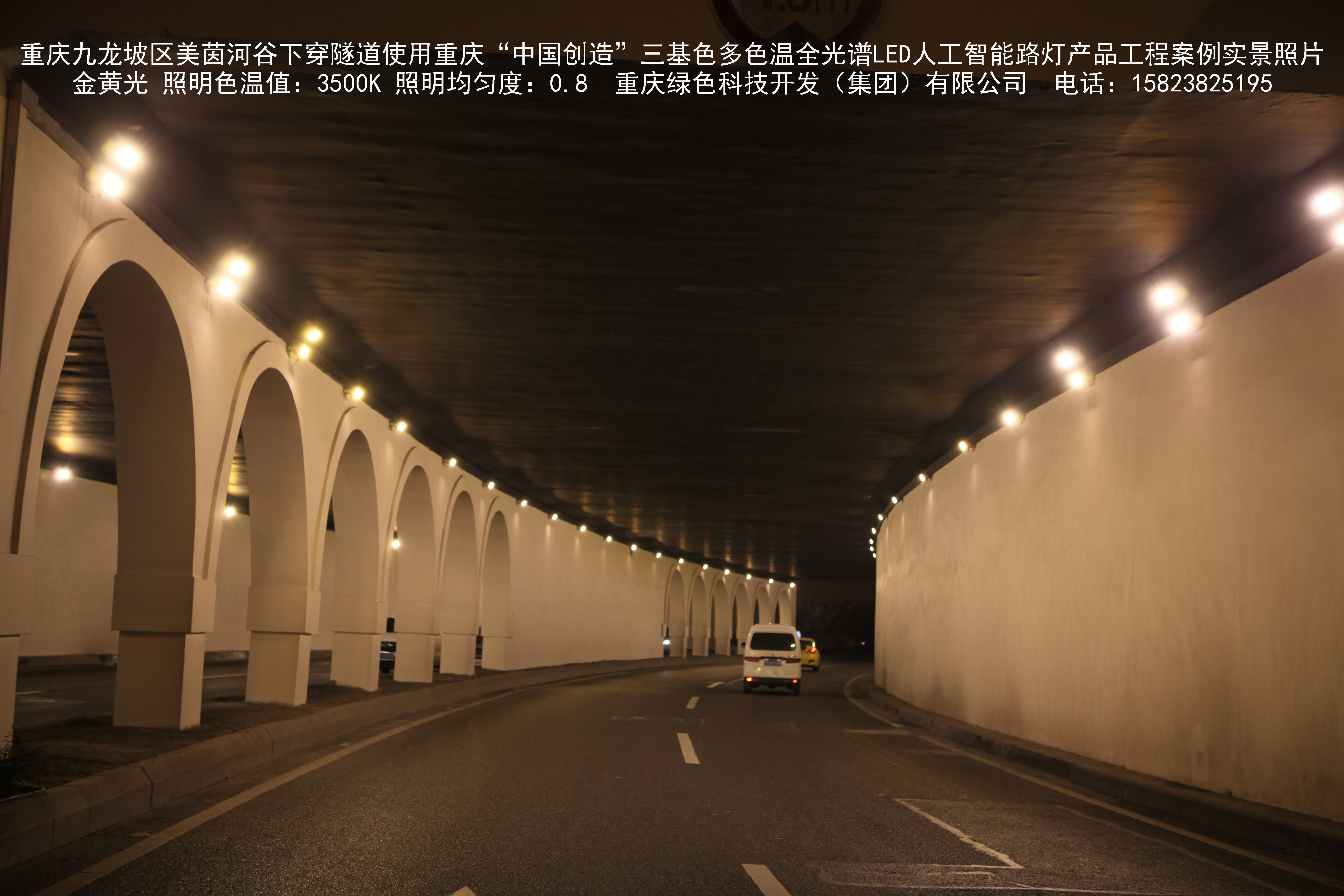 2018年9月,重慶市九龍坡區城市管理局使用我司自主研發(fā)制造的重慶“中國創(chuàng )造”三基色多色溫全光譜LED人工智能隧道燈系列產(chǎn)品,實(shí)施了美茵河谷下穿隧道市政設施品質(zhì)提升工程。該工程已全面竣工。工程實(shí)施后,極大地提高了城市照明清晰度、燈光均勻度、舒適度。通過(guò)智能終端實(shí)現單燈感知、線(xiàn)纜防盜報警,與原高壓鈉燈相比,節能率60%以上,有效解決了關(guān)閉控制回路或間隔關(guān)燈方式造成的照明暗區,確保行人和車(chē)輛通行的安全,實(shí)現城市路燈照明系統的智能化管理,推進(jìn)了智慧城市建設。