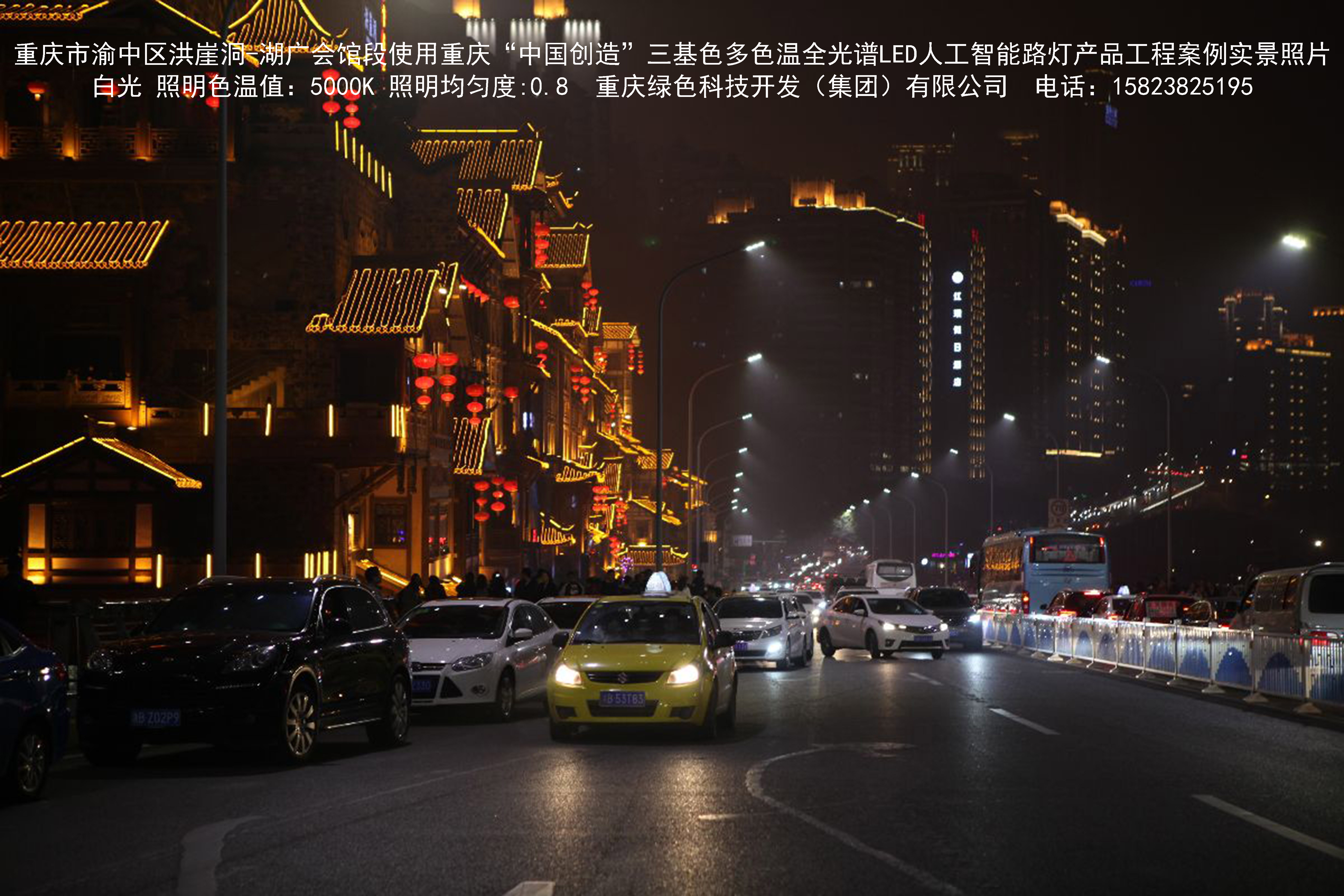 2018年12月,重慶市城市照明管理局使用我司自主研發(fā)制造的重慶“中國創(chuàng )造”三基色多色溫全光譜LED人工智能路燈系列產(chǎn)品,實(shí)施了渝中區市政設施品質(zhì)提升工程。該工程已全面竣工。工程實(shí)施后,極大地提高了城市照明清晰度、燈光均勻度、舒適度。通過(guò)智能終端實(shí)現單燈感知、線(xiàn)纜防盜報警,與原高壓鈉燈相比,節能率60%以上,有效解決了關(guān)閉控制回路或間隔關(guān)燈方式造成的照明暗區,確保行人和車(chē)輛通行的安全,實(shí)現城市路燈照明系統的智能化管理,推進(jìn)了智慧城市建設。