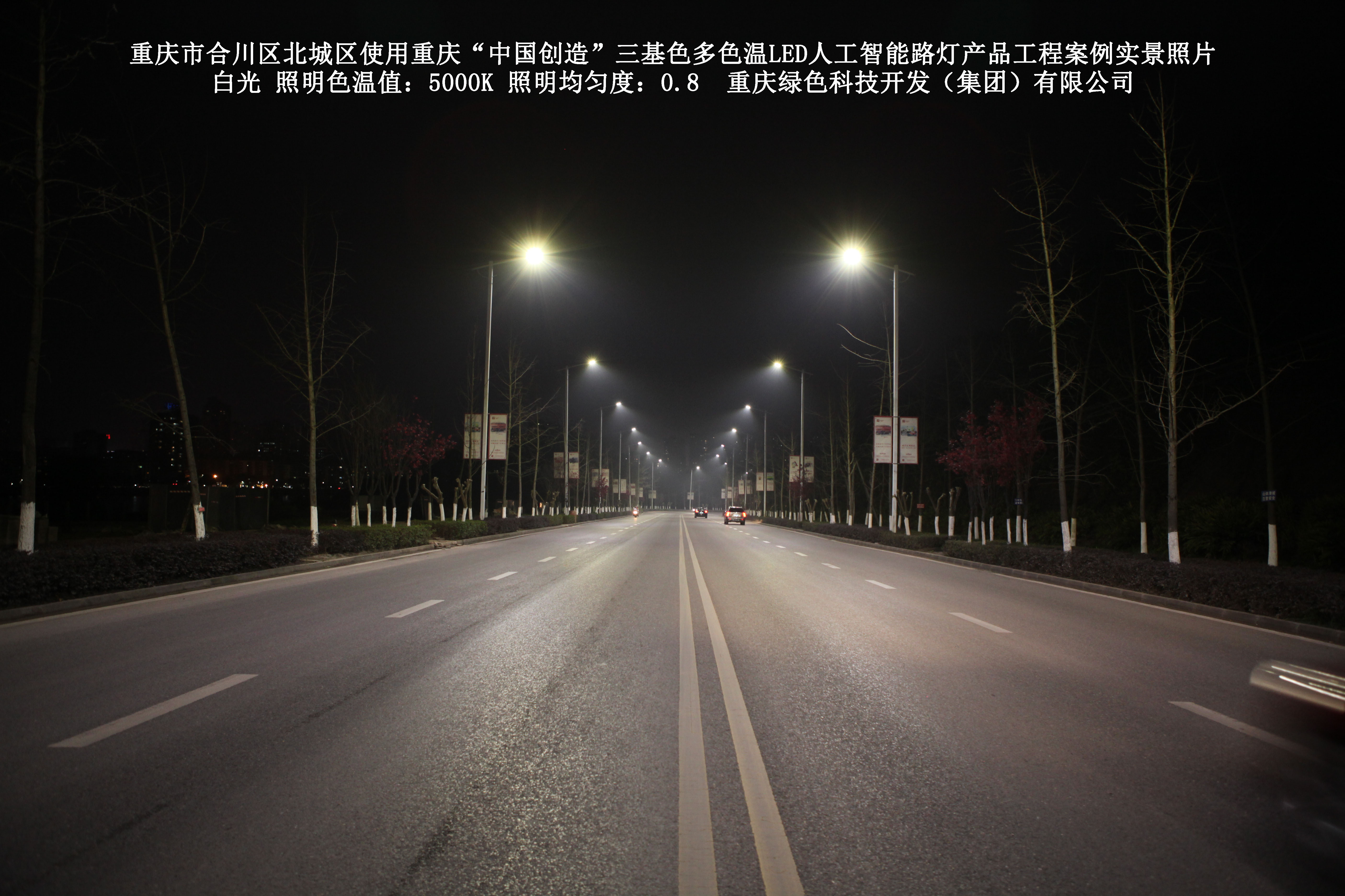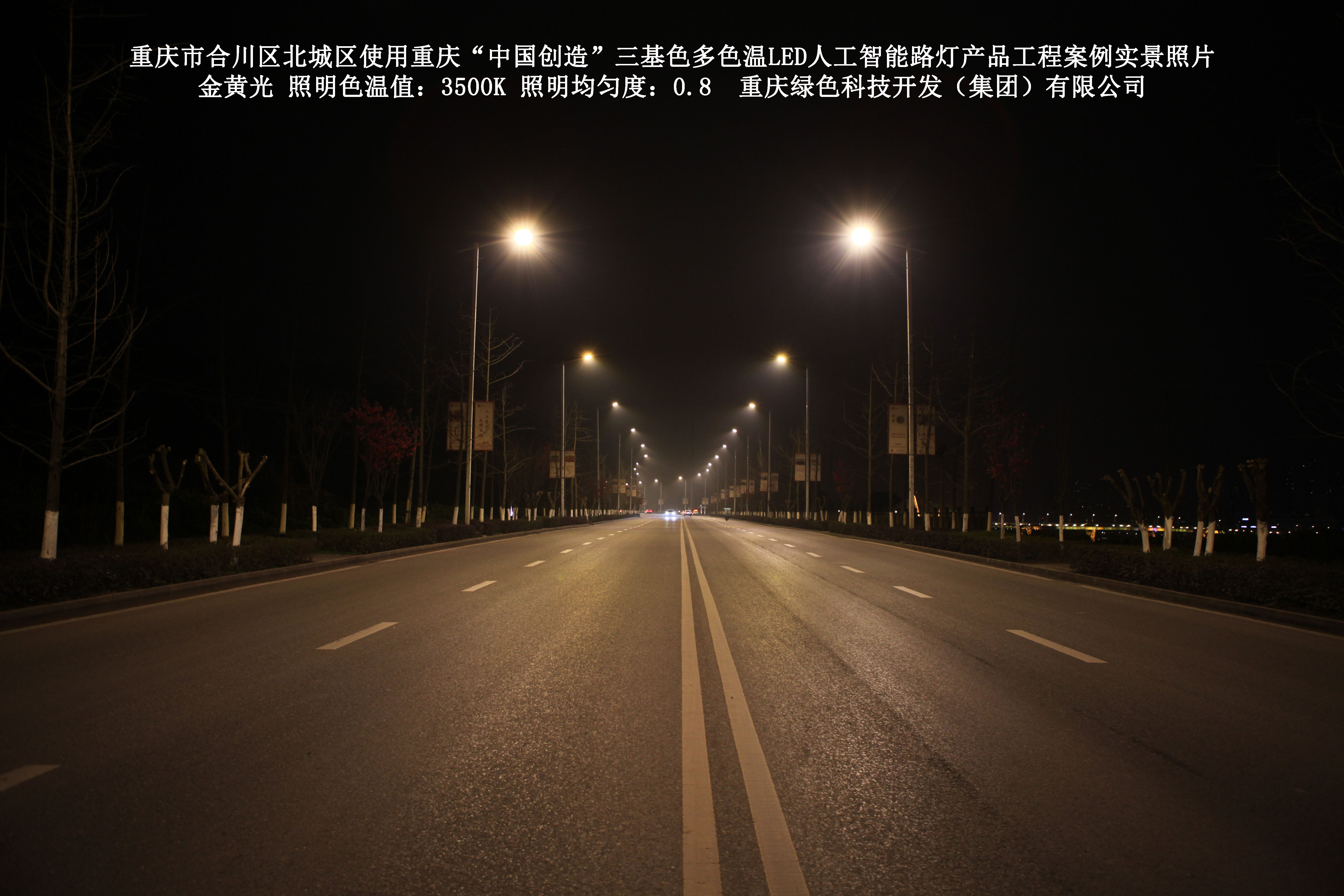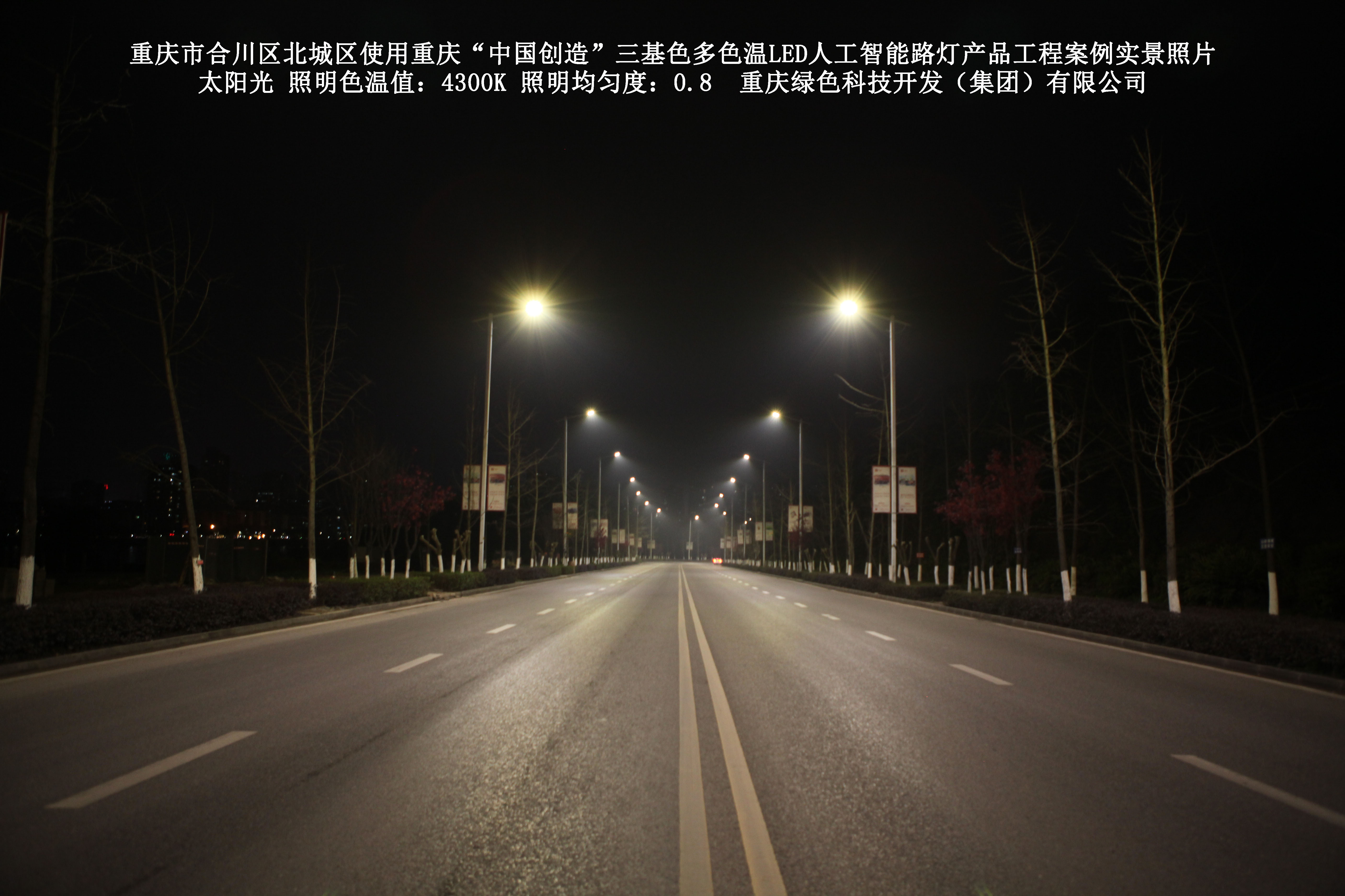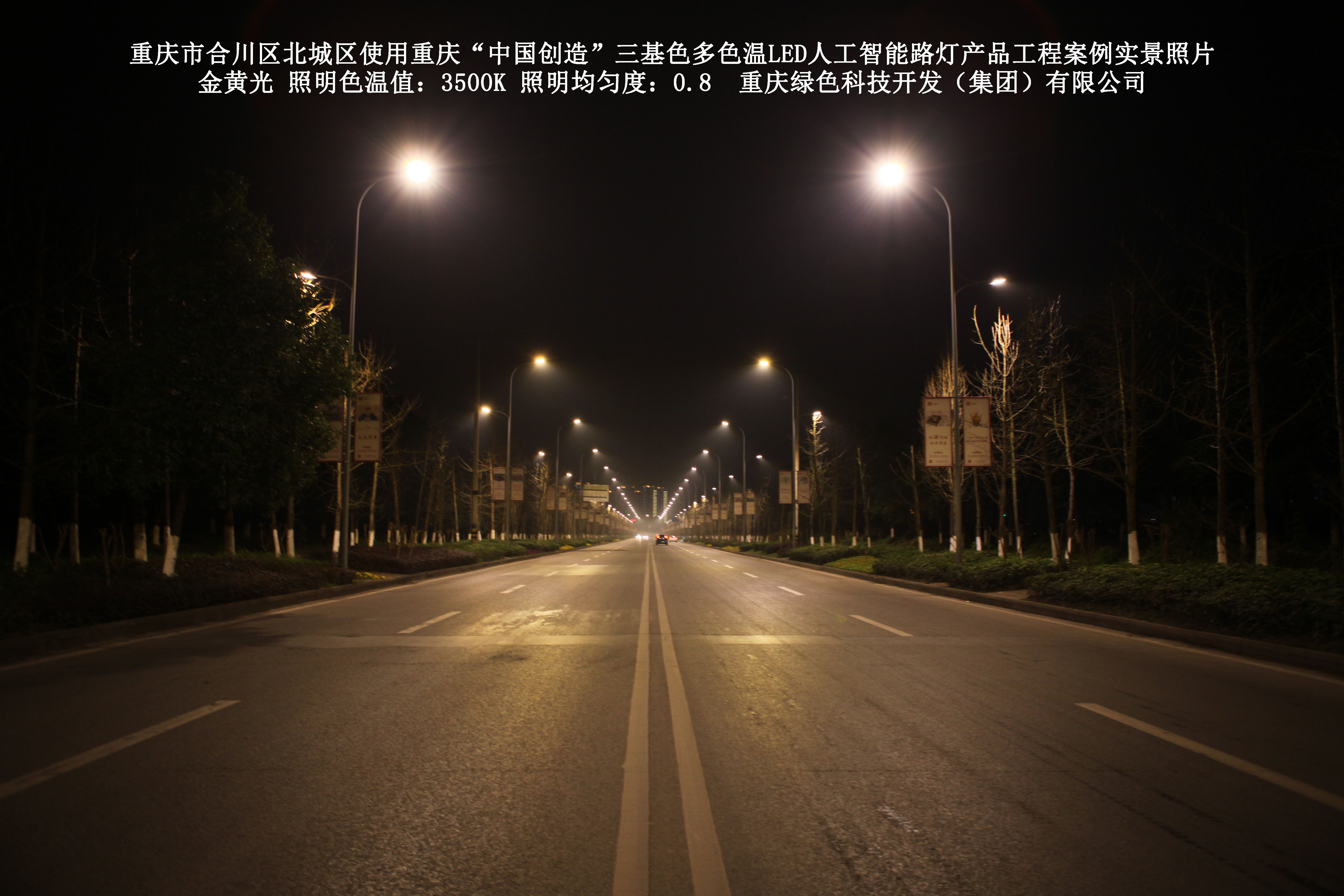 2019年1月,重慶市合川區城市管理局使用了我司研發(fā)制造的重慶“中國創(chuàng )造”三基色多色溫LED人工智能路燈5144盞,對合川區北城區實(shí)施了綠色照明科技節能改造工程,該工程已全面竣工。工程實(shí)施后,極大地提高了合川區北城區城市照明清晰度、燈光均勻度、舒適度。通過(guò)智能終端實(shí)現單燈感知、線(xiàn)纜防盜報警,與原高壓鈉燈相比,節能率60%以上,有效解決了關(guān)閉控制回路或間隔關(guān)燈方式造成的照明暗區,確保行人和車(chē)輛通行的安全,實(shí)現城市路燈照明系統的智能化管理,推進(jìn)了智慧城市建設。