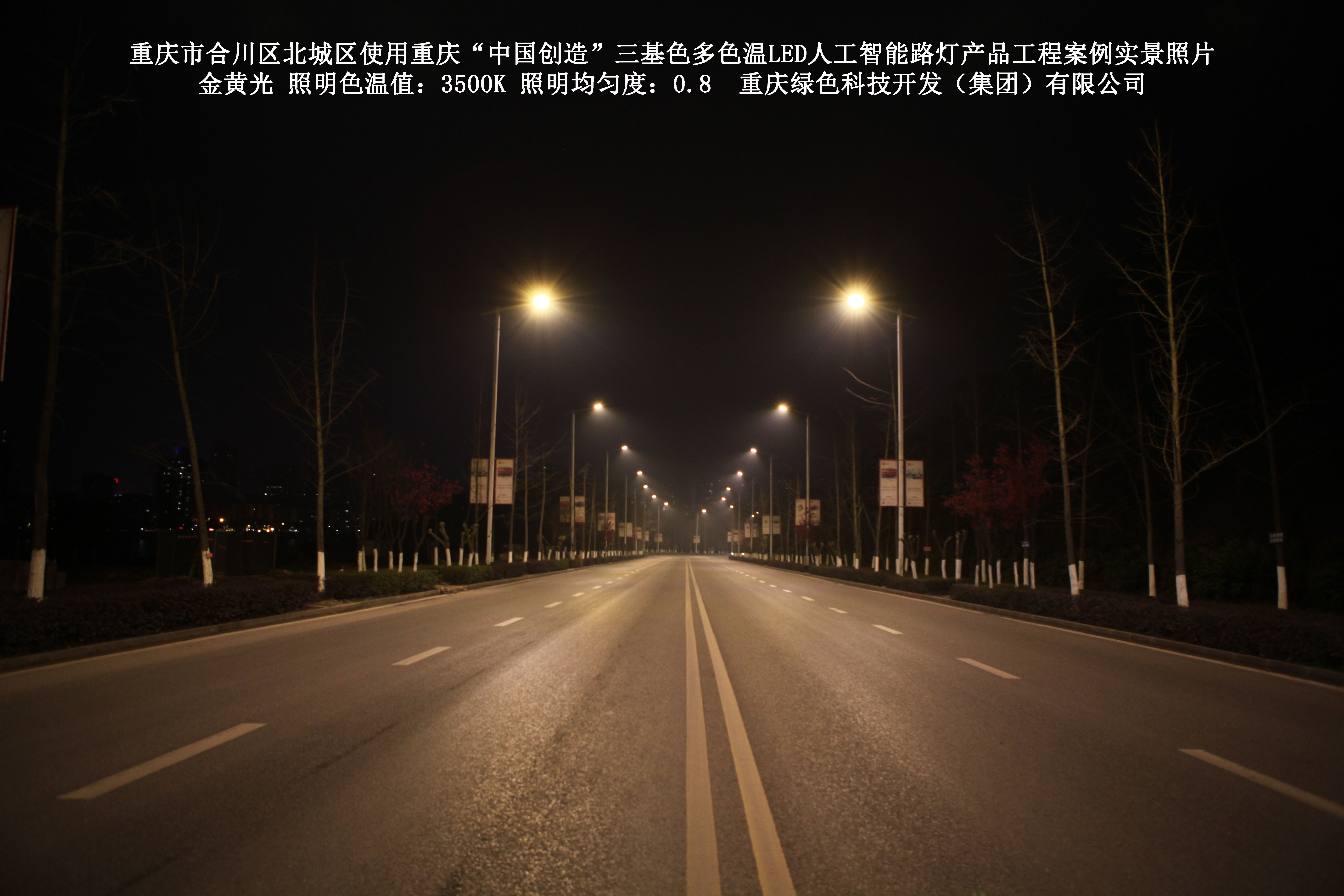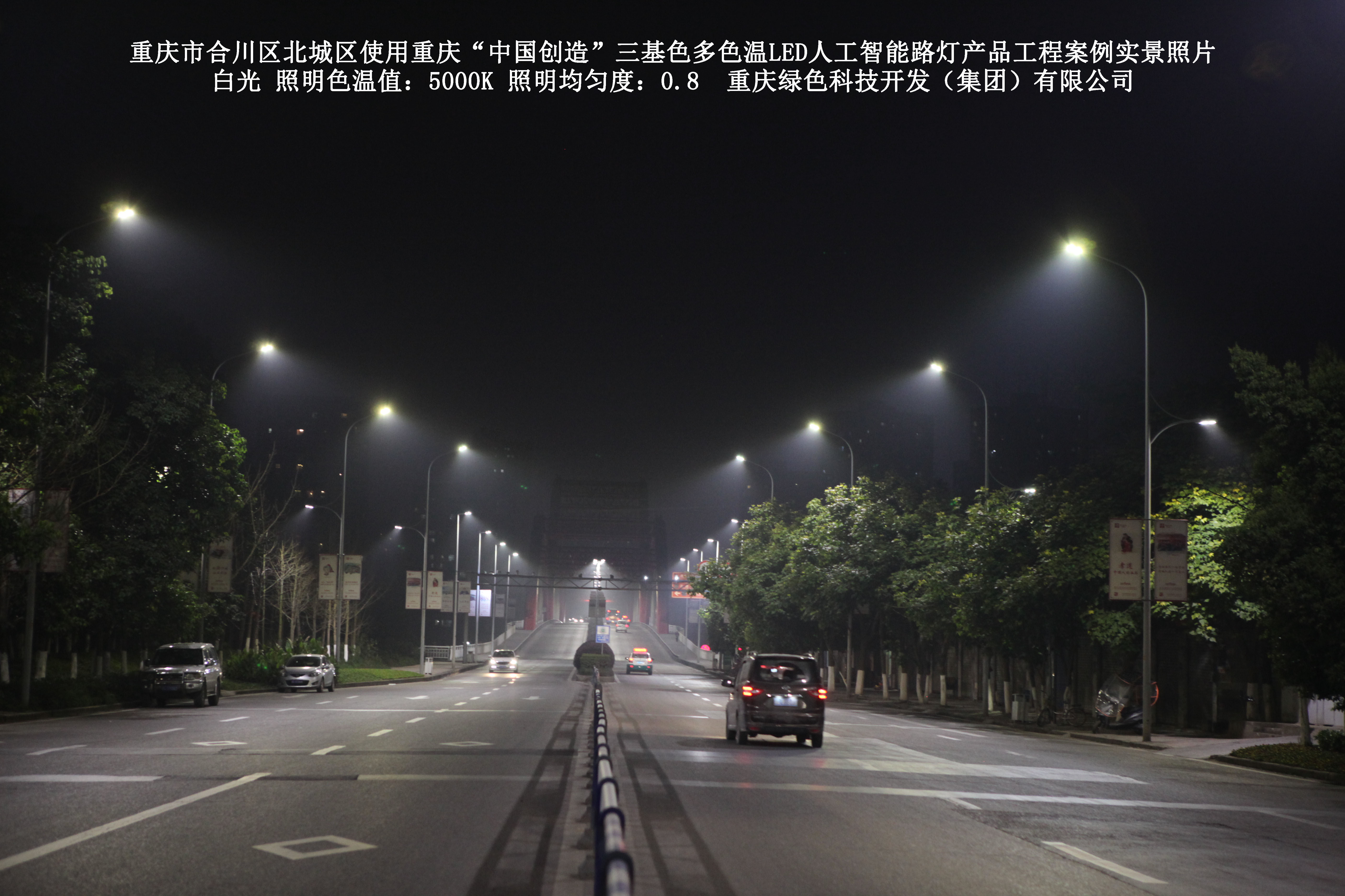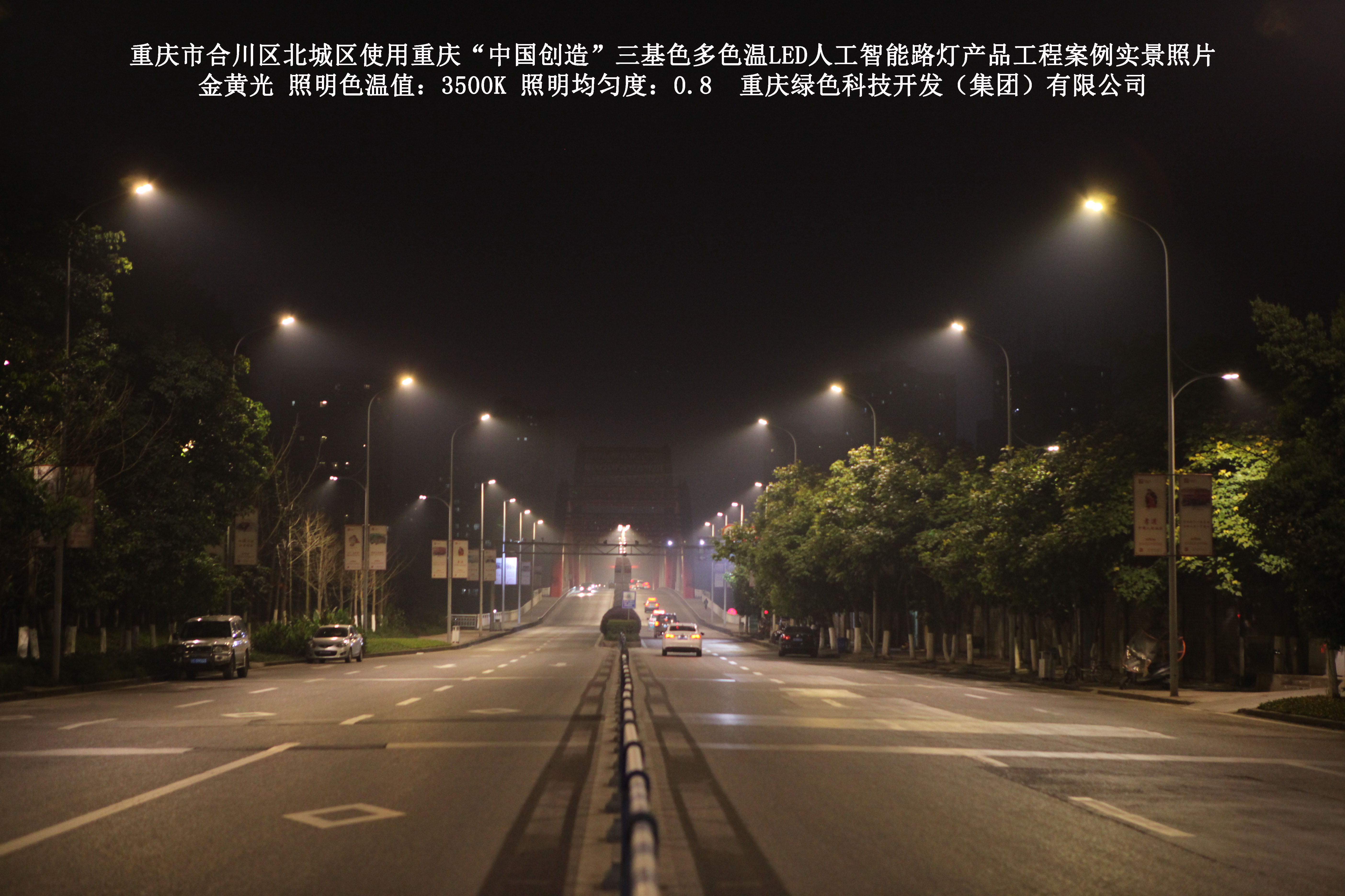 2019年1月,重慶市合川區城市管理局使用了我司研發(fā)制造的重慶“中國創(chuàng )造”三基色多色溫LED人工智能路燈5144盞,對合川區北城區實(shí)施了綠色照明科技節能改造工程,該工程已全面竣工。工程實(shí)施后,極大地提高了合川區北城區城市照明清晰度、燈光均勻度、舒適度。通過(guò)智能終端實(shí)現單燈感知、線(xiàn)纜防盜報警,與原高壓鈉燈相比,節能率60%以上,有效解決了關(guān)閉控制回路或間隔關(guān)燈方式造成的照明暗區,確保行人和車(chē)輛通行的安全,實(shí)現城市路燈照明系統的智能化管理,推進(jìn)了智慧城市建設。