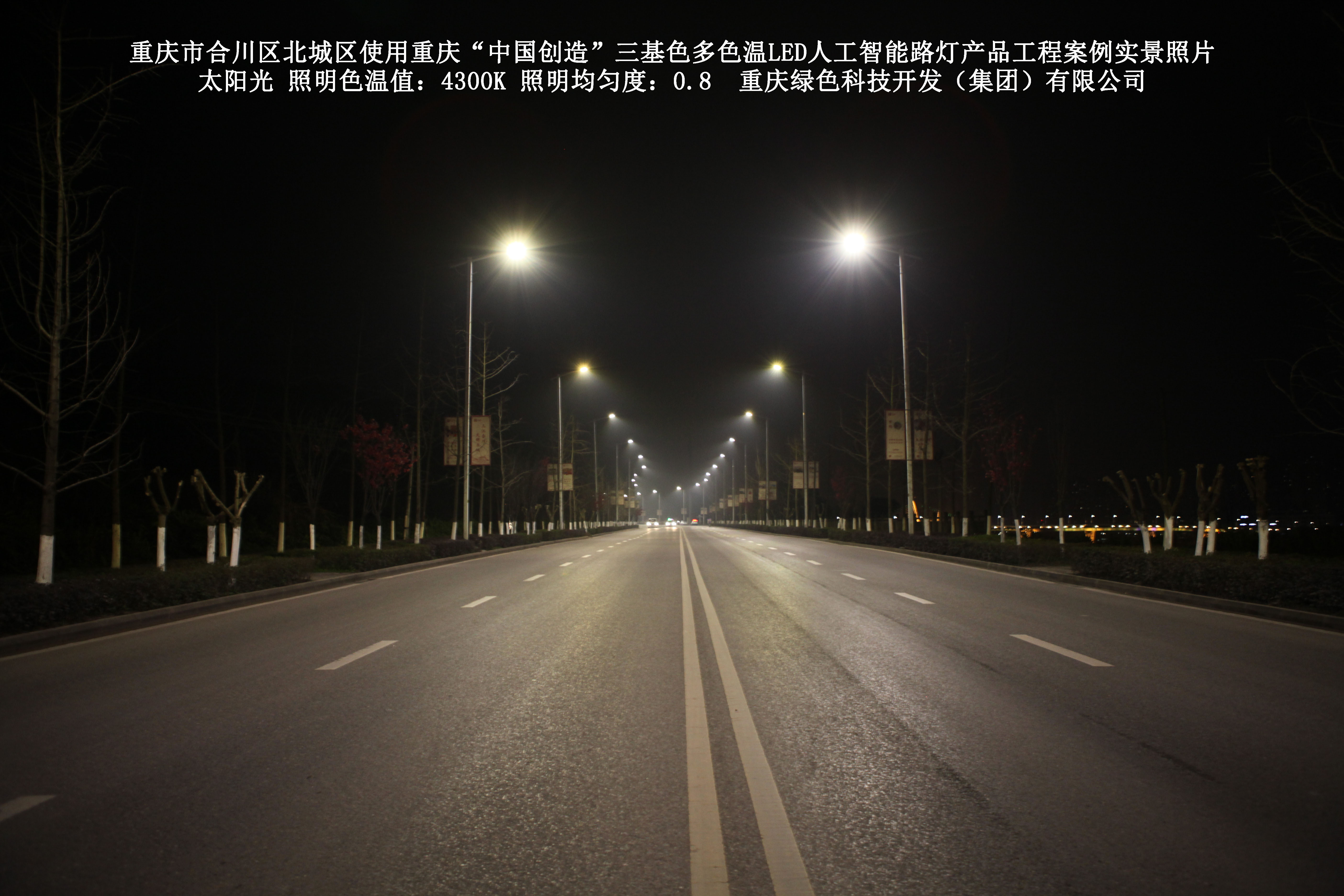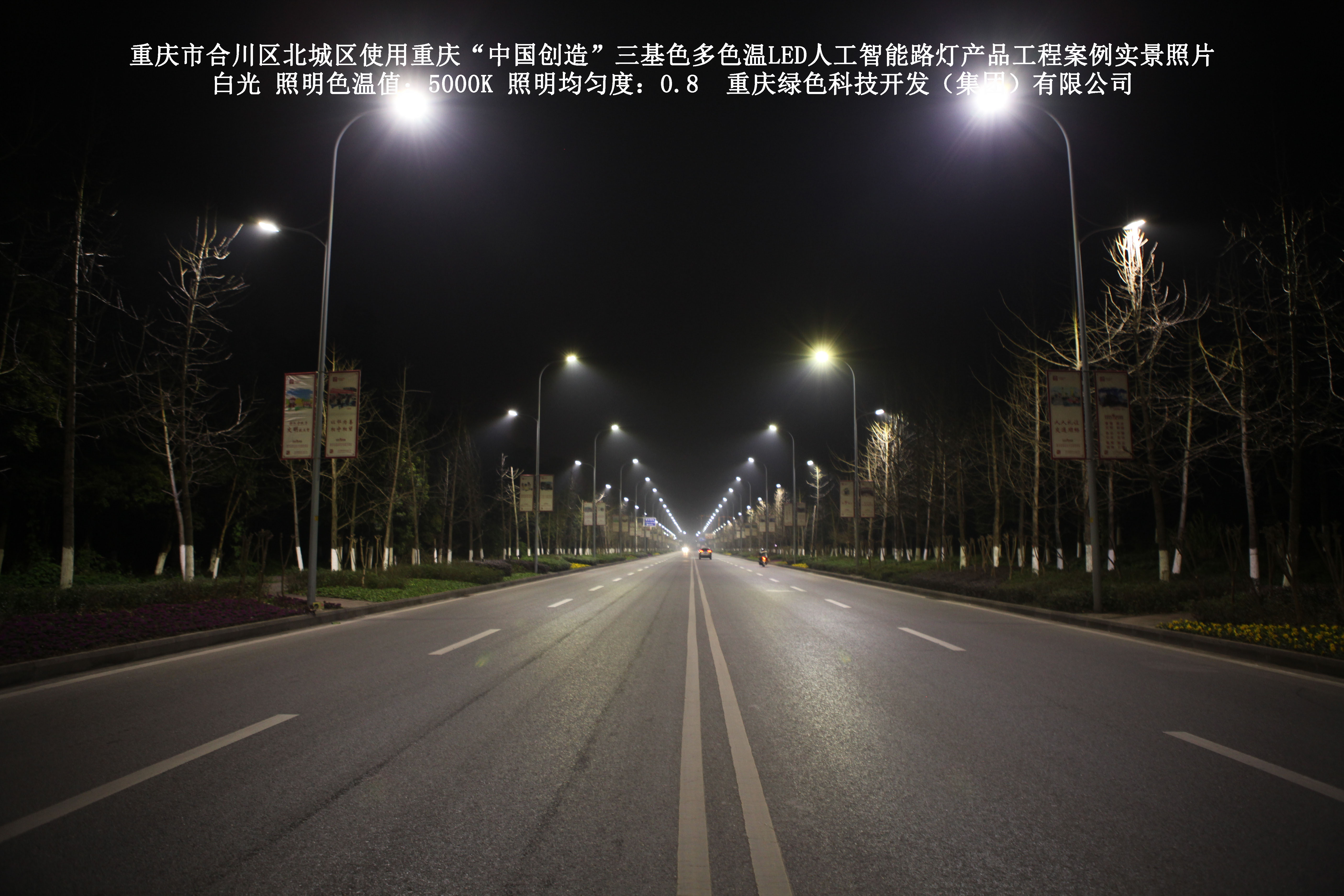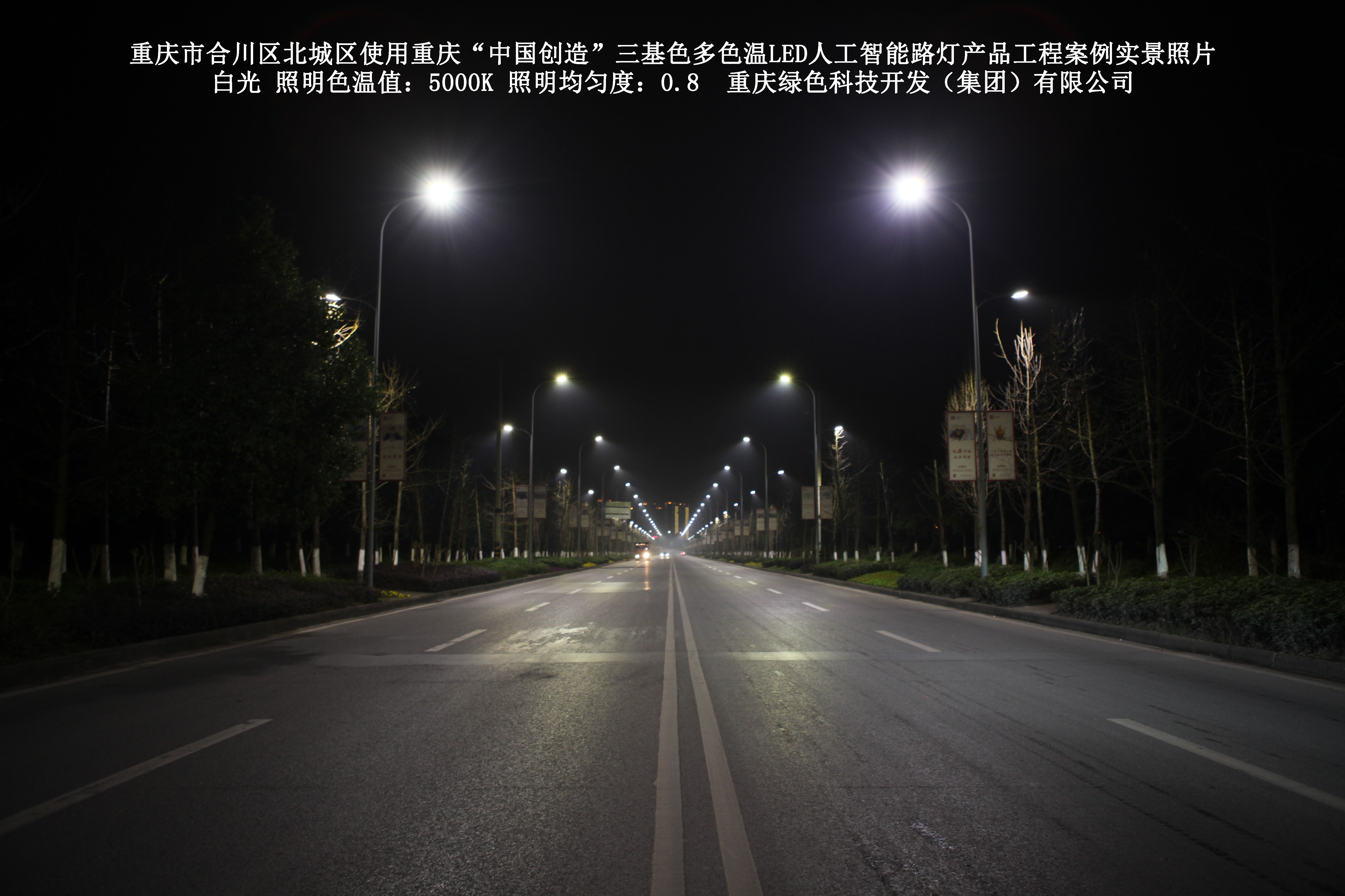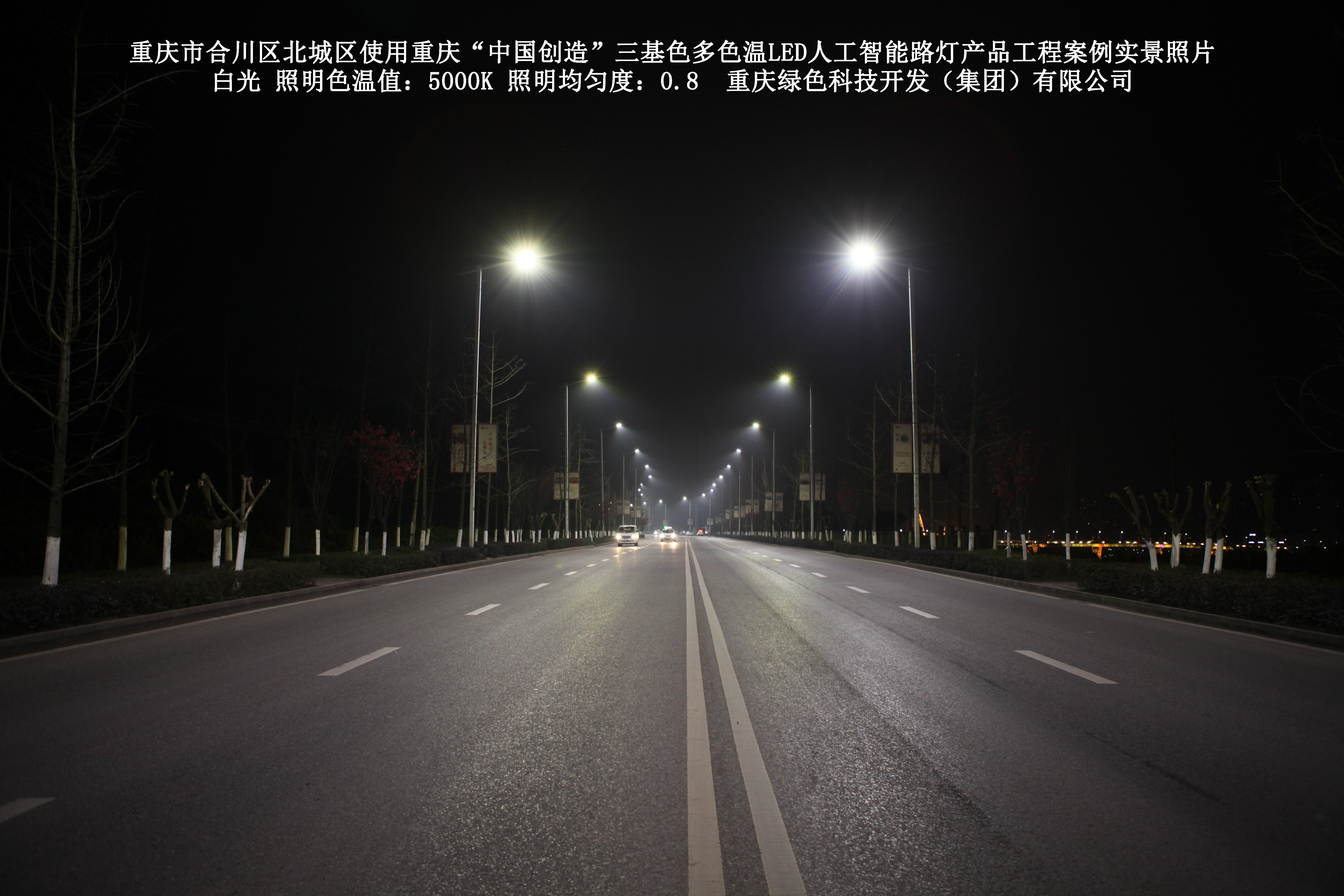 2019年1月,重慶市合川區城市管理局使用了我司研發(fā)制造的重慶“中國創(chuàng )造”三基色多色溫LED人工智能路燈5144盞,對合川區北城區實(shí)施了綠色照明科技節能改造工程,該工程已全面竣工。工程實(shí)施后,極大地提高了合川區北城區城市照明清晰度、燈光均勻度、舒適度。通過(guò)智能終端實(shí)現單燈感知、線(xiàn)纜防盜報警,與原高壓鈉燈相比,節能率60%以上,有效解決了關(guān)閉控制回路或間隔關(guān)燈方式造成的照明暗區,確保行人和車(chē)輛通行的安全,實(shí)現城市路燈照明系統的智能化管理,推進(jìn)了智慧城市建設。